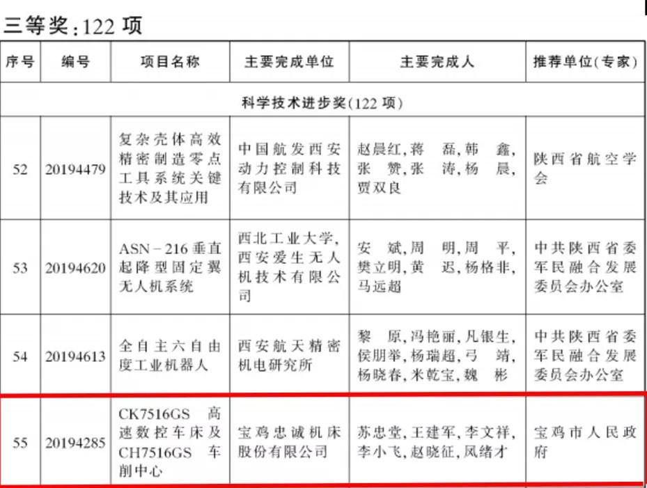 秦川集團(tuán)本部參與完成的“高速精密機(jī)床數(shù)字化正向設(shè)計(jì)技術(shù)及應(yīng)用”項(xiàng)目獲技術(shù)發(fā)明獎(jiǎng)一等獎(jiǎng)。秦川集團(tuán)寶雞機(jī)床“CK7516GS高速數(shù)控車床及CH7516GS車削中心”項(xiàng)目獲陜西省科學(xué)技術(shù)進(jìn)步獎(jiǎng)三等獎(jiǎng)。