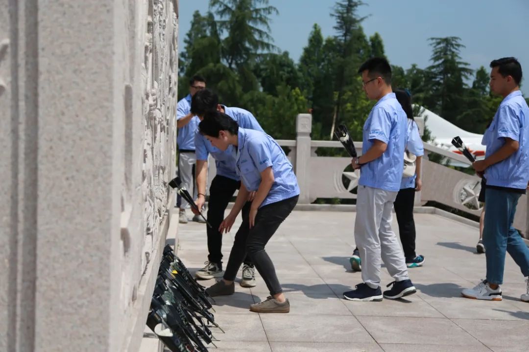 在紀念碑前,全體青年緬懷先烈、致敬英雄,向烈士默哀并行三鞠躬,進行了獻鮮花儀式。